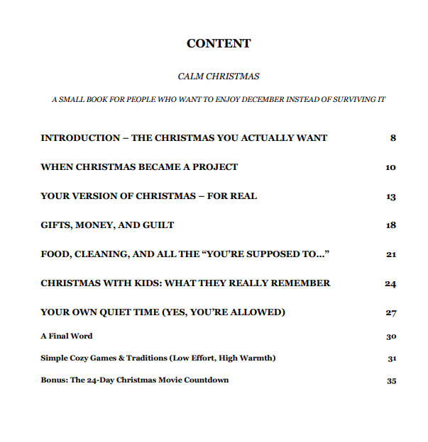 Calm Christmas is a warm and practical guide for anyone who wants to reclaim the holiday season from stress, exhaustion, and unrealistic expectations.