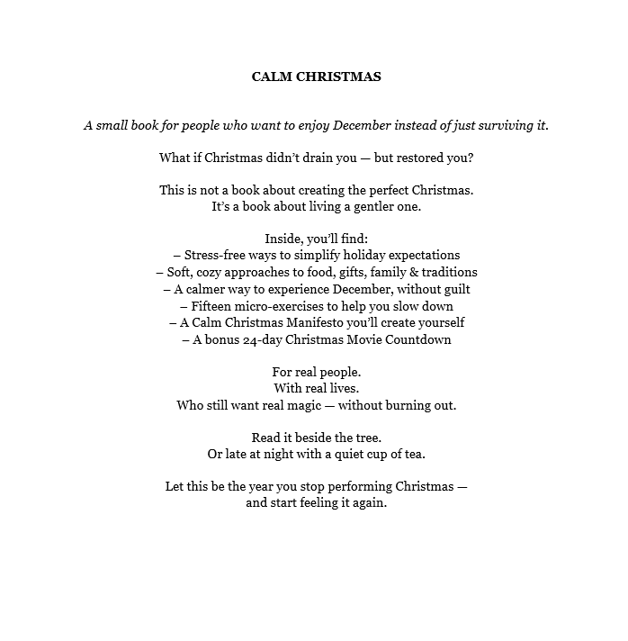 Includes a Calm Christmas Manifesto, twelve micro-exercises, and a 24-day Christmas Movie Countdown.